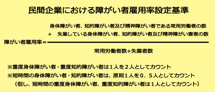2016年4月1日に「障がい者の雇用の促進等に関する法律」が改正され施行されました。障がい者の雇用差別が禁止され、事業所の規模・業種に関わらず全ての事業主が障がい者雇用率を充足するよう求められております。障がい者雇用率は2021年3月に見直され民間企業では2.3%となりました。雇用率を満たしていない企業には「障害者雇用納付金」を納めることが義務化されています。